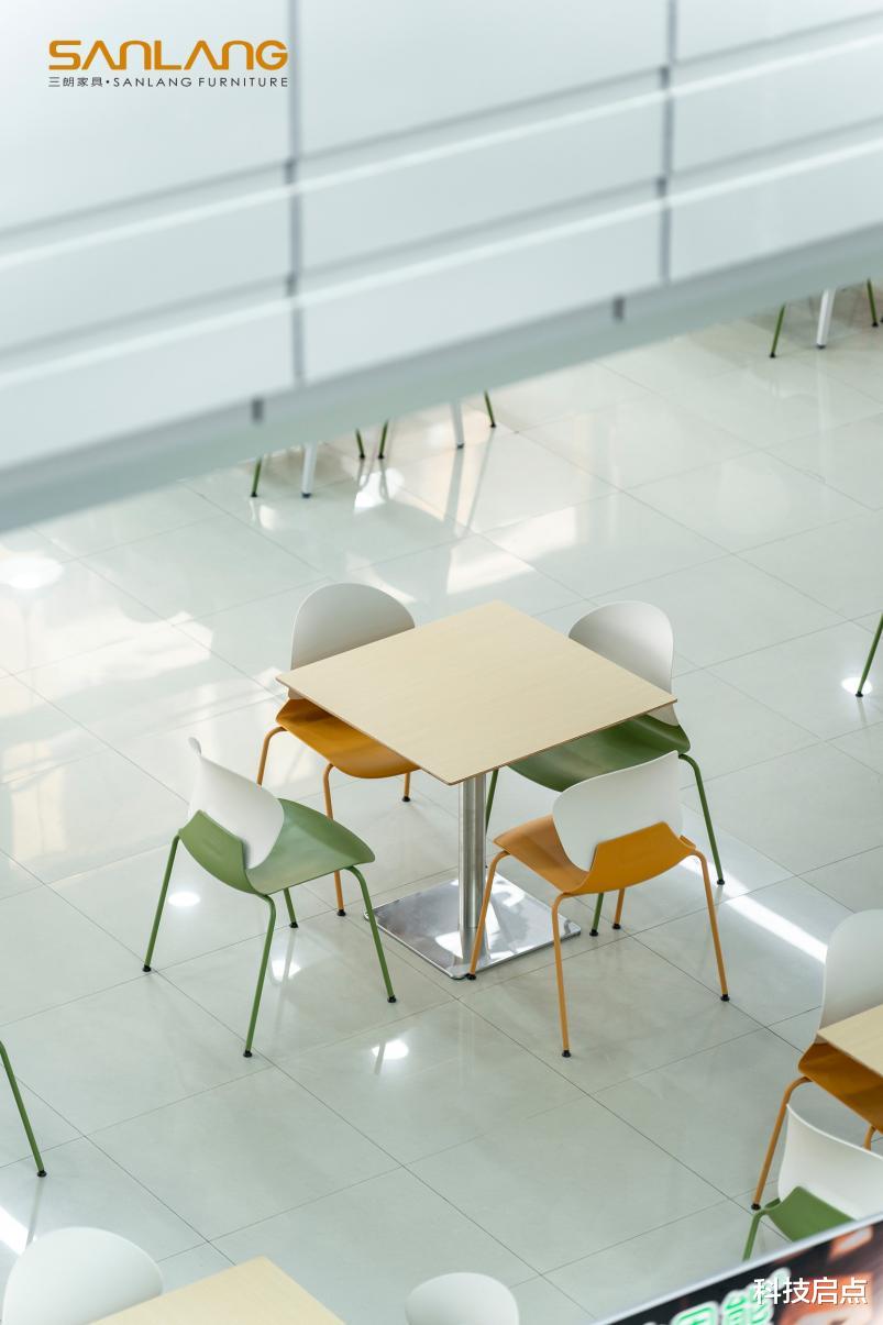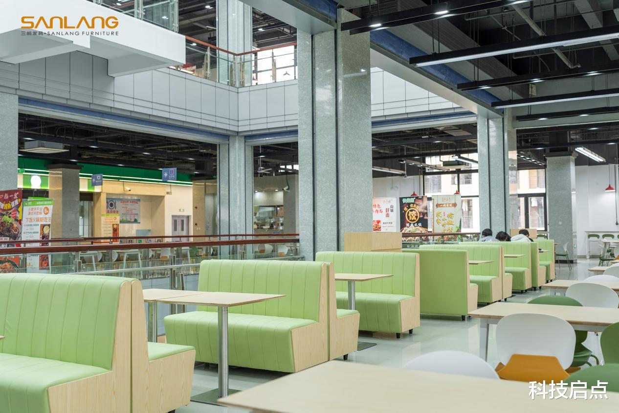 无论是标准四人桌还是舒适的卡座区,都清晰划定了通行路径与就坐区域,规整有序的排列确保了师生高峰时段也能高效通行与就座,有效避免了拥挤与混乱,形成了一种“流动的效率感”。