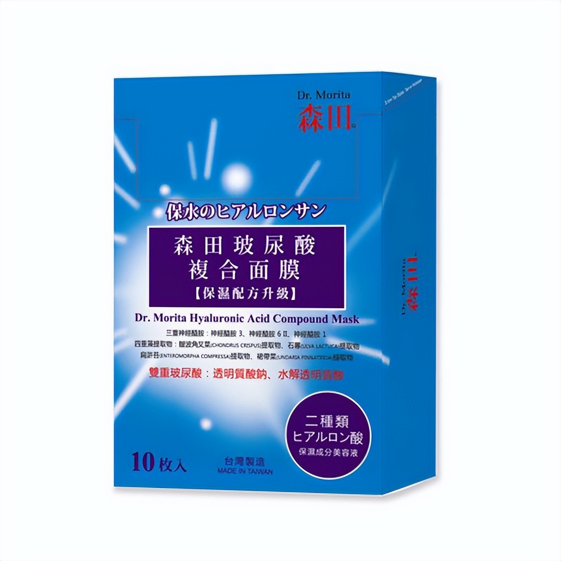 4 森田玻尿酸补水面膜来自中国台湾省的玻尿酸补水面膜,补水效果确实挺好的,用的是进口玻尿酸。这款面膜补水效果一直很受欢迎,也是森田的当家花旦。