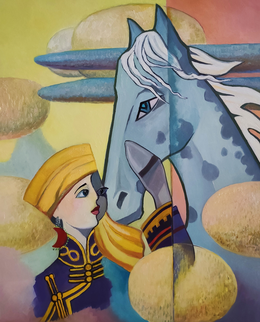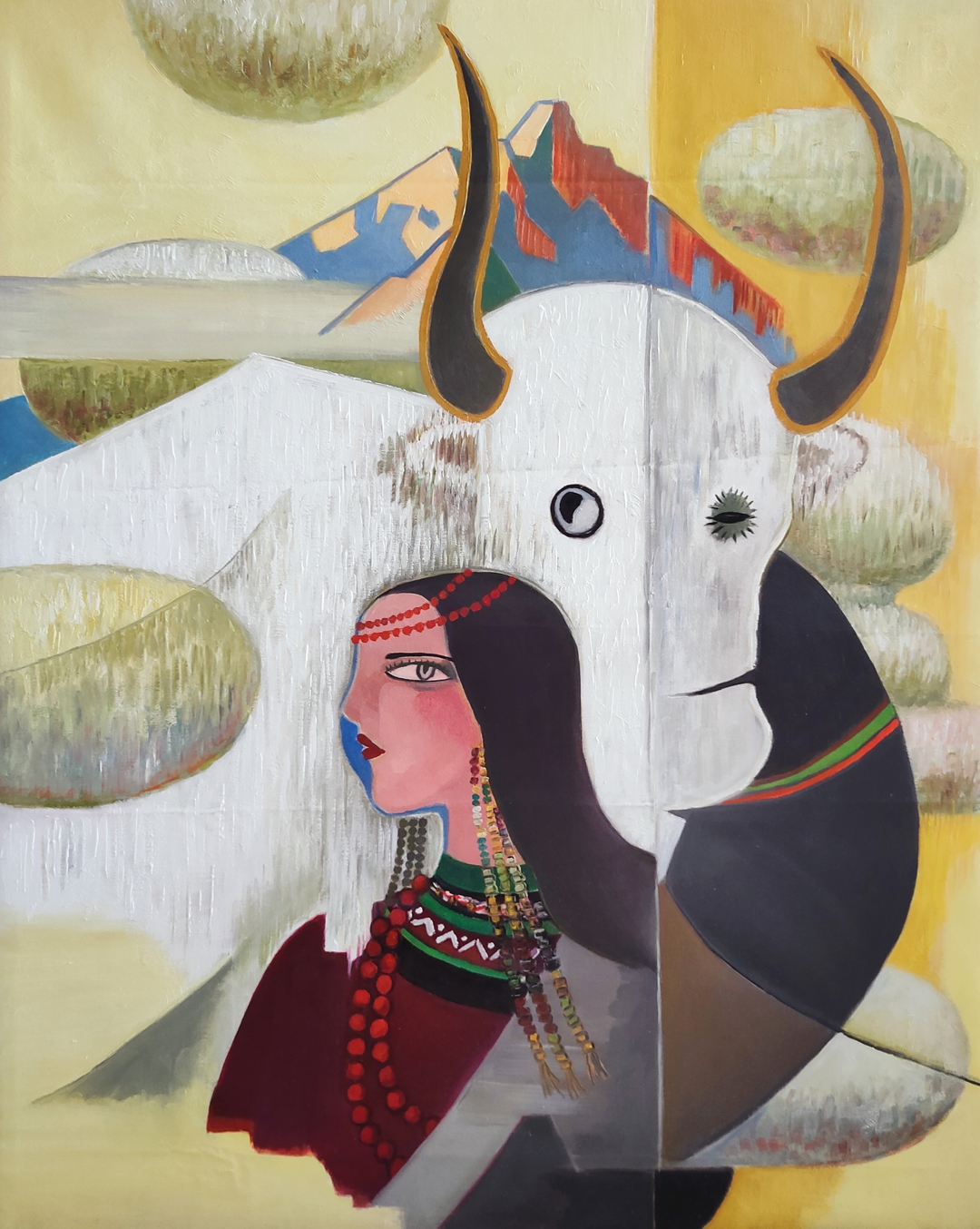 《女孩与白牦牛》油画90ⅹ110cm 2025年