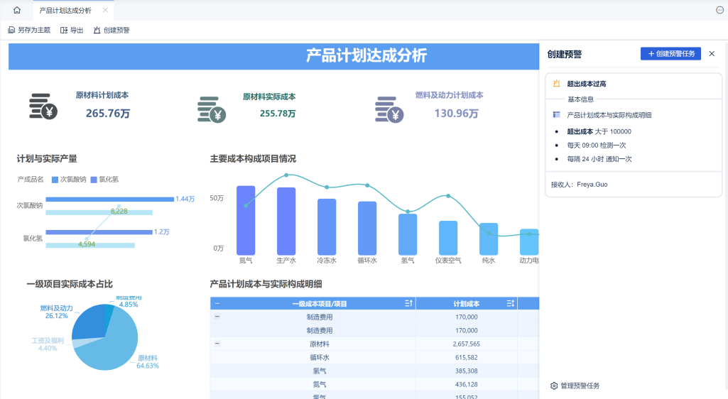 主动预警与监控,FineBI可以对关键指标设置监控规则,如果数据异常,立即通过消息或邮件主动预警,第一时间发现问题并响应,还可以借助下钻、联动等功能,或利用数据解释辅助洞察,快速定位到可能的原因部门或产品线。