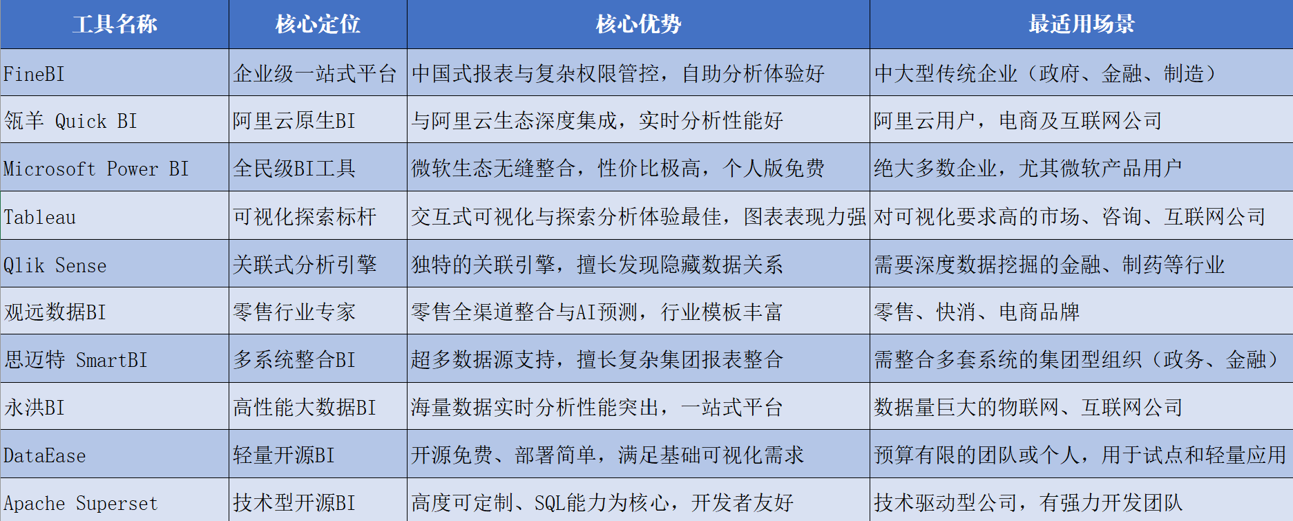 BI工具总结与对比表