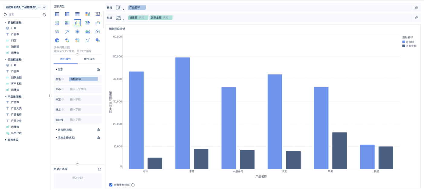 处理复杂分析的能力强,不管是多张表的数据关联,还是做同环比、排名、占比等深度计算,都能通过内置功能或公式快速实现,精准满足各类业务分析需求。