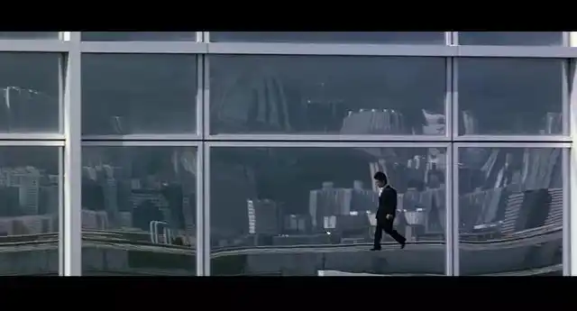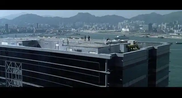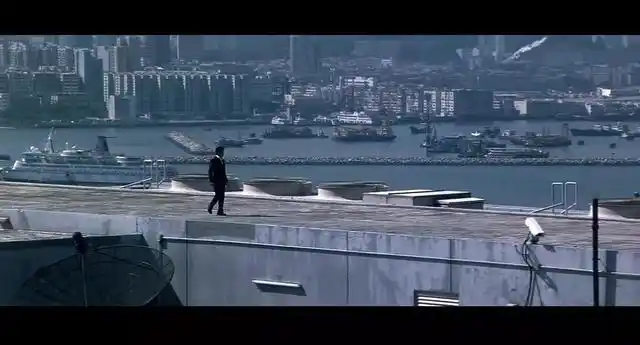 远镜头带出了维多利亚港的海景,也带出了高楼,确定了这场戏发生的地点就在天台。然而导演没让观众单纯看风景,镜面双面性的暗示始终埋在观众心里。双面镜如同双面人,刘建明这个人格分裂的设定从开头便被反复强调。