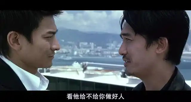 2002年之际,导演、演员们大概未曾想到,这场天台戏会成为往后十八年众多电影竞相效仿的范例。陈永仁将手铐搂得愈发紧,此动作给后面刘建明的转身做了有力铺垫。他讲“我不像你,我见得光”之时,画面中他的确立于阳光下,而刘建明处于阴影中。