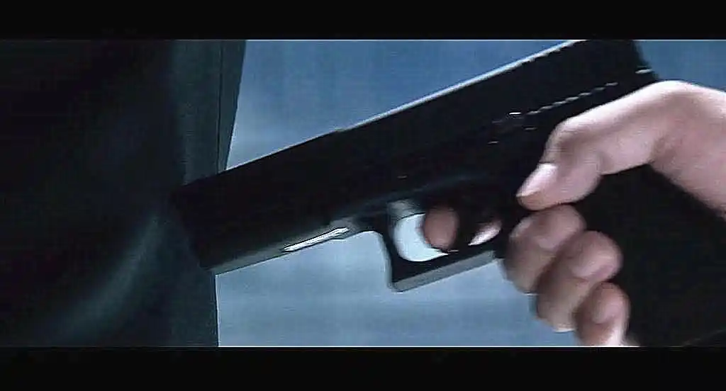 这当口让一个会令观众讨厌的角色入场,便可使整个氛围得以改变。瞅见手枪现身,观众隐隐约约地猜到快要发生不好的事了。这场戏看上去普普通通,然而却交织融合了无数的明喻以及暗喻。导演所做的并非仅仅是将画面拍摄记录下来,而是颇具耐心地去确保每个镜头的角度、眼神、动作能够满足叙事所需。