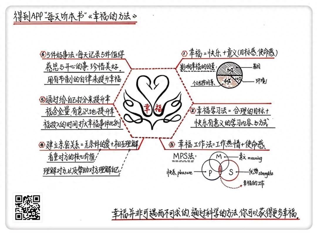 上面分享的幸福工作法,总结一下就是:工作中只有同时具有工作热情和使命感,才能找到幸福感。不仅可以通过问自己一系列问题来理清大方向,还可以通过MPS法帮自己找到既有意义,又能让自己感到快乐,也能充分发挥自身优势的工作,也就是令自己感到幸福的工作。