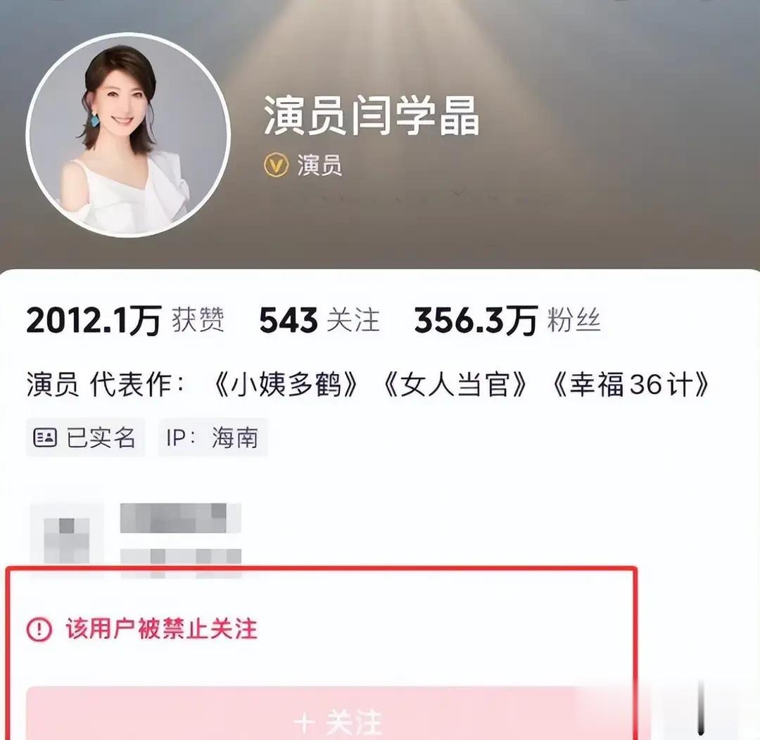 为了不让舆论发酵,多个平台已经禁止关注闫学晶,闫学晶本人也关闭了评论。