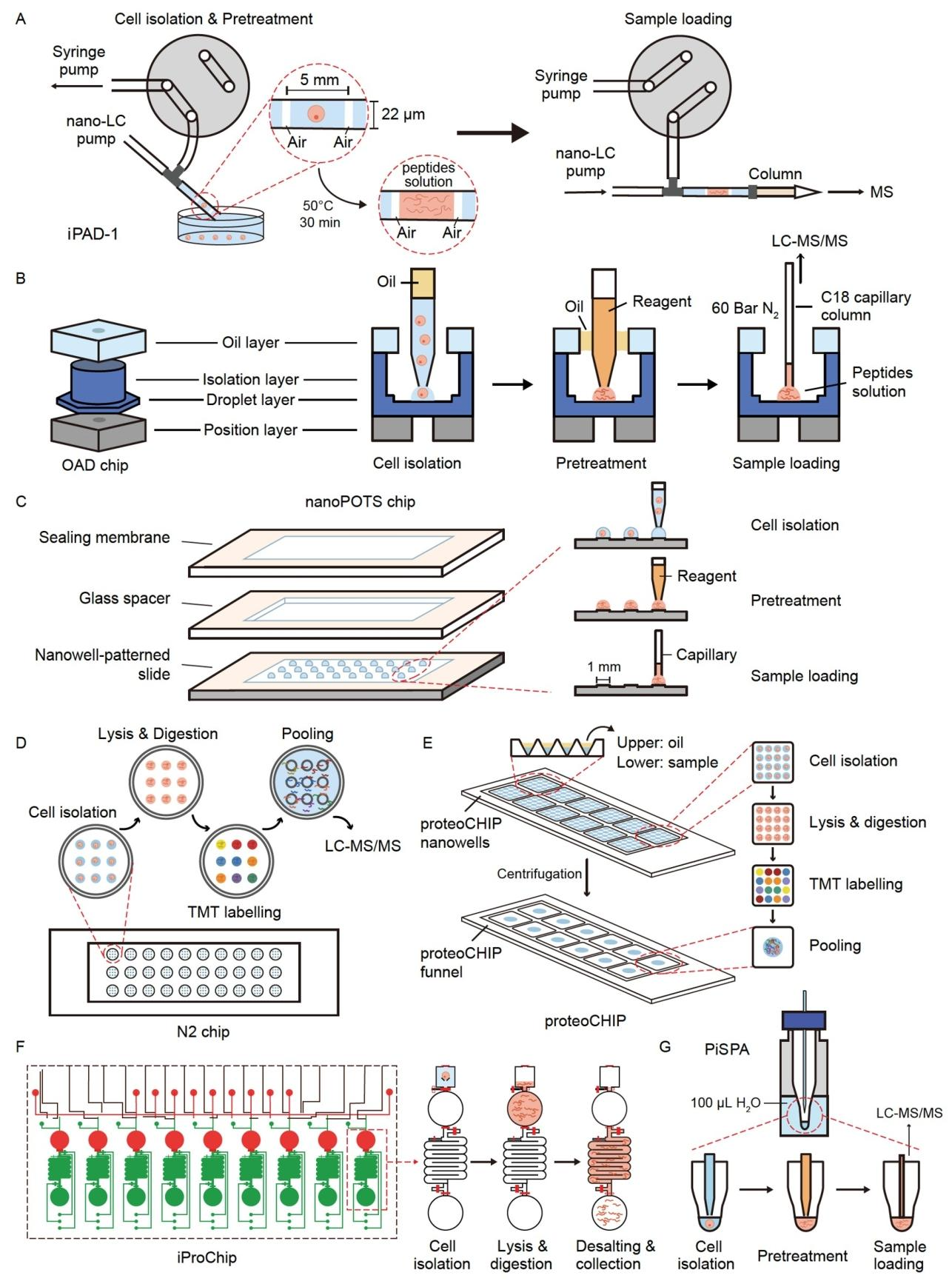 质谱基单细胞蛋白质组 / 代谢组技术:聚焦样品制备微型化、质谱检测灵敏度优化,SCoPE2、nanoPOTS 等技术实现单细胞水平蛋白 / 代谢物精准定量,为生物标志物发现提供新维度(配图 8:主流 SCP 工具 workflow)。