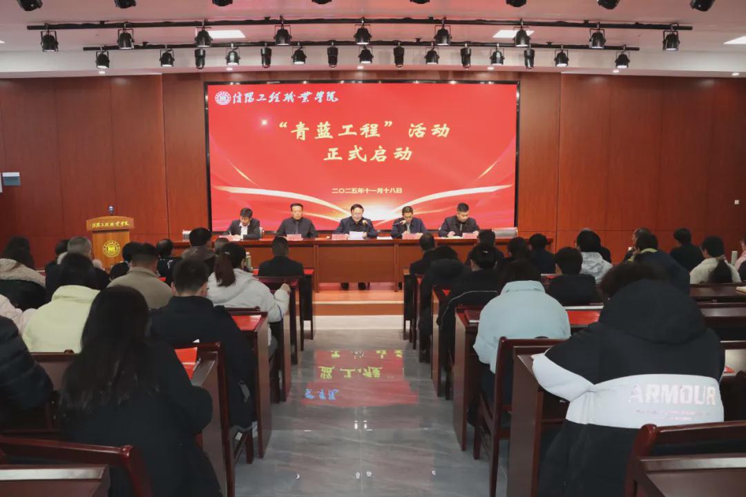 11月18日,信阳工程职业学院在毕昇楼演播厅举行2025年“青蓝工程”启动仪式。校党委副书记、校长黄功学出席仪式并作动员讲话,副校长杨新学、徐俊杰、校长助理徐耀武及各职能部门负责人、二级学院负责人、全体教职工共同参加。启动仪式由副校长杨金国主持。
