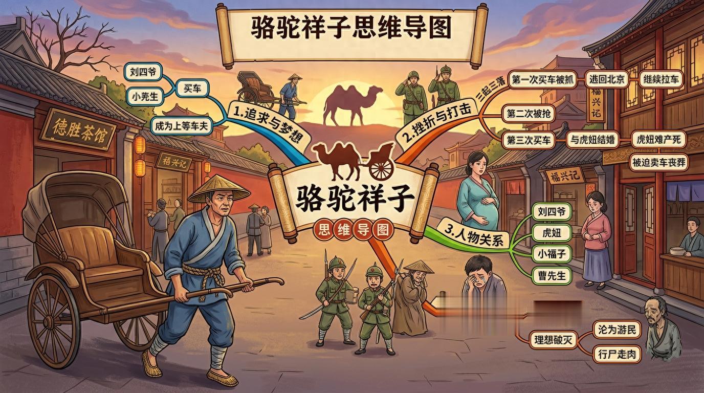这篇文章就是把我梳理《骆驼祥子》的完整思路分享出来,如果你家孩子正在读这本书,或者正在准备相关考试,跟着这个框架做一张思维导图,效果比死记硬背好很多。