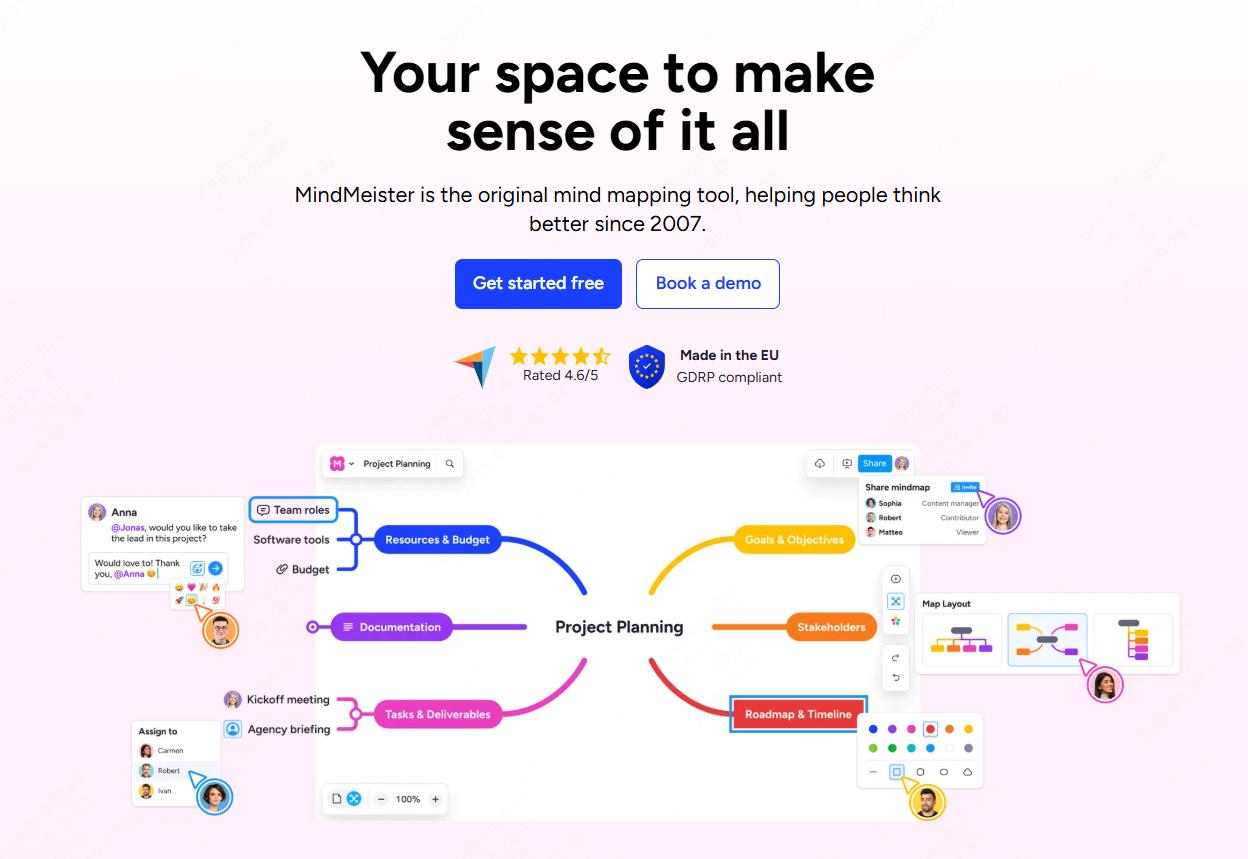 MindMeister是在线工具不用装软件,多人协作功能适合分组作业。