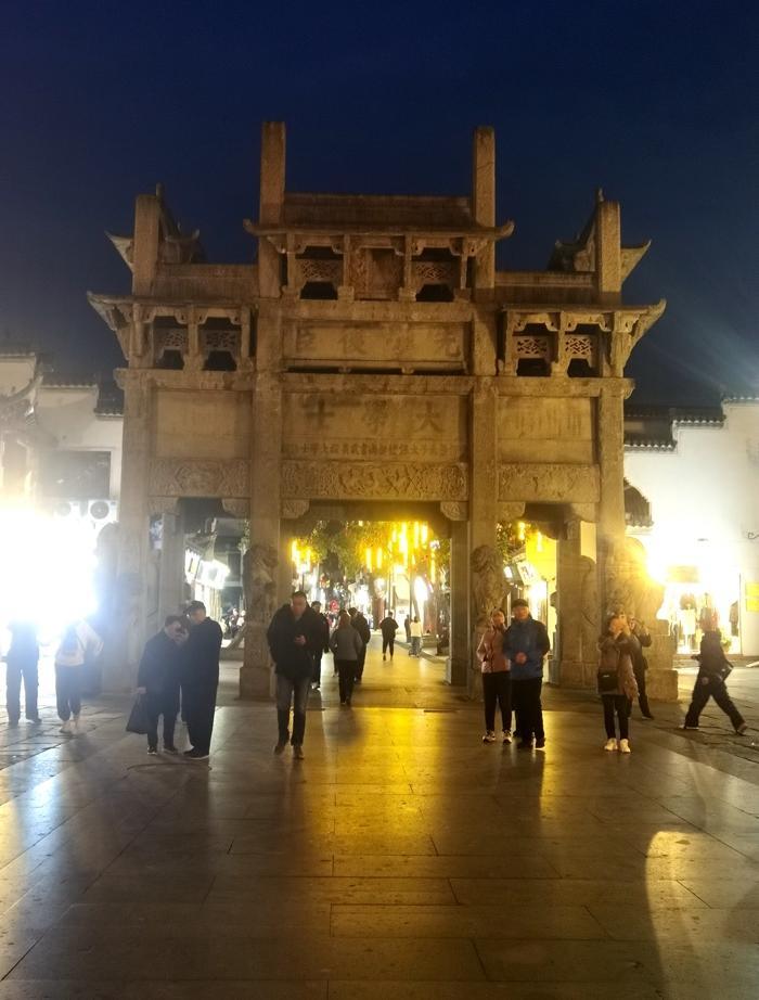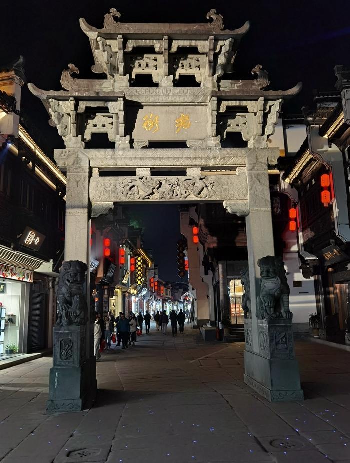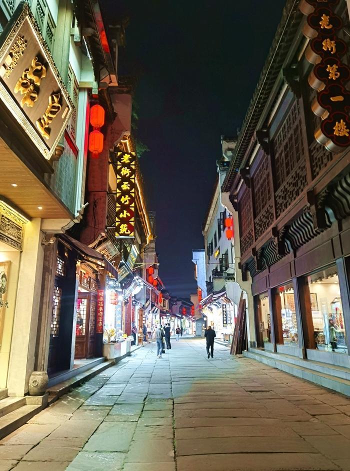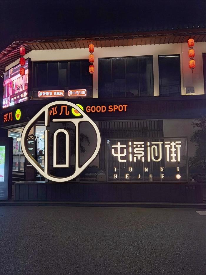 2024年11月22日,我决定到安徽旅游,我到安徽的第一站就是屯溪老街。 屯溪老街坐落在安徽省黄山市屯溪区中心地段。离黄山约60公里。 白天我从昆明坐高铁到黄山市。到屯溪已经是晚上了。第二天到黄山,回来时,又到了晚上,所以,我在屯溪老街拍的照片都是夜景。 本来只想在此落落脚,中转一下游黄山。但是一到屯溪老街,就让我眼前一亮。 首先是我落脚的旅馆,装饰得很文艺和文雅,房价100多,卫生间里有智能马桶,早上提供10多元的自助早餐,吃得很爽口。旅馆还可以帮预订到黄山的旅游车。真是全方位的服务。