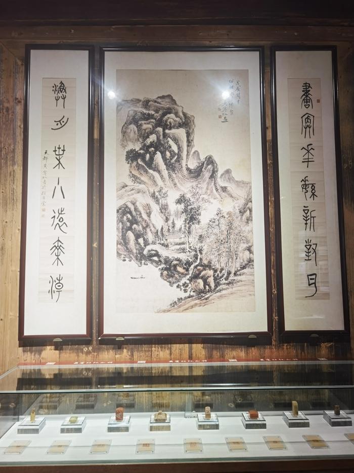 纪念馆的展厅分三个部分,分别展示黄宾虹大师的生平事迹、书画原作、临时展览等等。