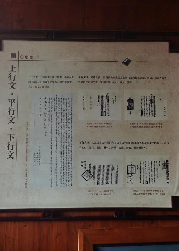 这里是徽州府衙的公堂,厅内悬挂着“明镜高悬”的匾额,厅内有判案桌,桌上有惊堂木,厅内有回避的牌子。亭前有戒石亭,亭侧设息民亭,供百姓休息使用。