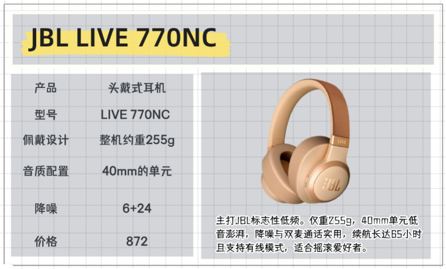 如果你是流行/摇滚音乐爱好者,可等促销入手:选JBL LIVE 770NC,标志性的低频音质,促销期间性价比超高,多场景切换也很实用。