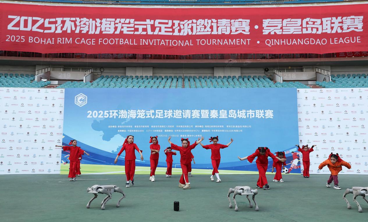开幕式上,一场“科技+运动”的表演更让笼式足球的“破界属性”锦上添花。身着鲜艳红衣的青少年与灵动机器狗默契共舞,机器狗敏捷穿梭于场地,青少年身姿矫健完成技术动作,二者的配合既展现了运动的力量感,又融入了科技的未来感,瞬间将观众带入“传统与创新交融”的运动世界,现场掌声与欢呼声此起彼伏,让笼式足球的“新潮属性”深入人心。