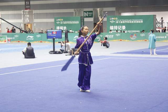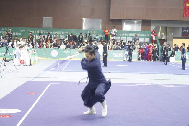 现场两个武当道长是广东队的,拿了九点多的高分,云剑耍得很飘逸。