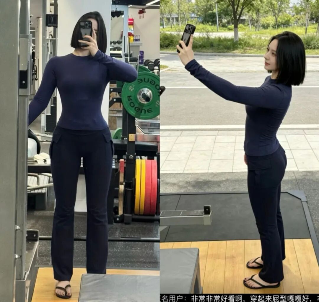 网友橙子在拼多多某服装店铺,买了一条裤子,穿着它在健身房运动时,觉得裤子很不错,就拍了张自拍追评。