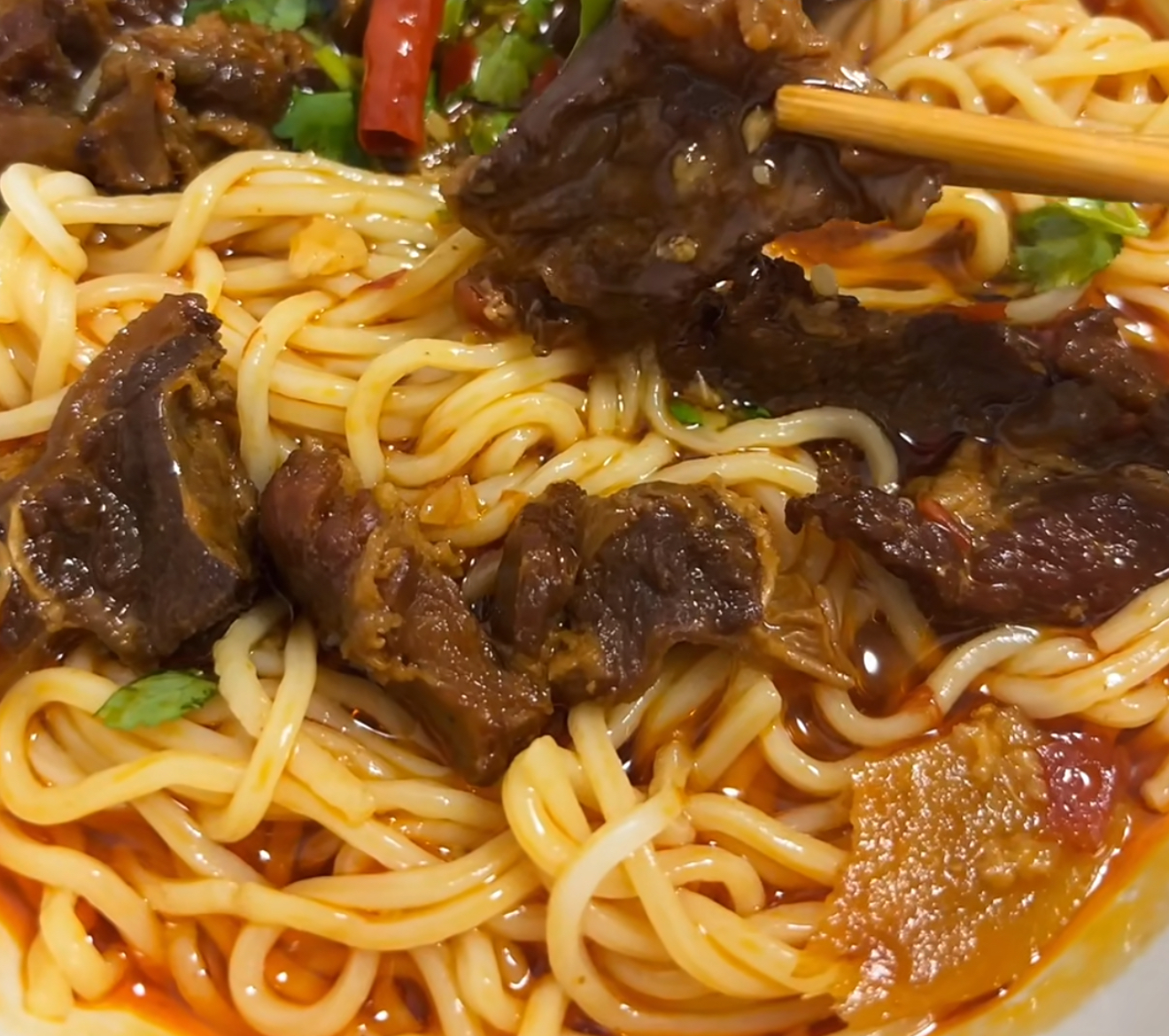 当你把这碗牛肉面端到面前,那浓郁的香气扑鼻而来,让人忍不住咽口水。先喝一口汤,牛骨的醇厚和牛肉的鲜美在口中交融,温暖从舌尖直抵心尖。再吃一口面条,劲道有嚼劲,吸收了汤汁的味道,格外美味。最后吃上一块牛肉,软烂入味,入口即化。