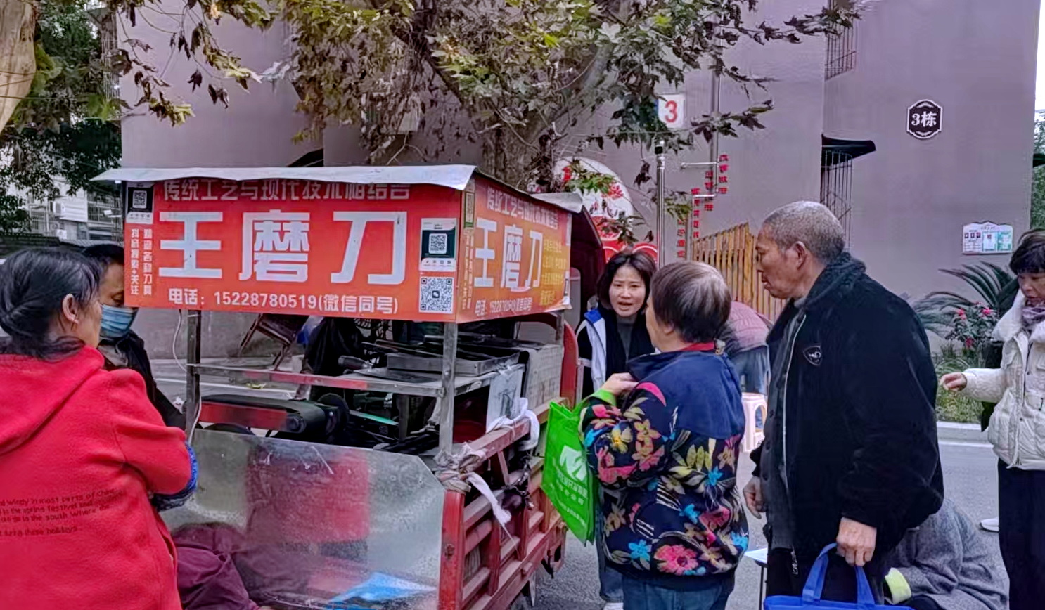 在免费磨刀服务区,经验丰富的师傅动作娴熟,为居民家中的菜刀、剪刀进行精细打磨,使其重现锋利。此举有效解决了居民的“磨刀难”问题,现场秩序井然,累计服务30余户家庭,获得了居民的一致好评。