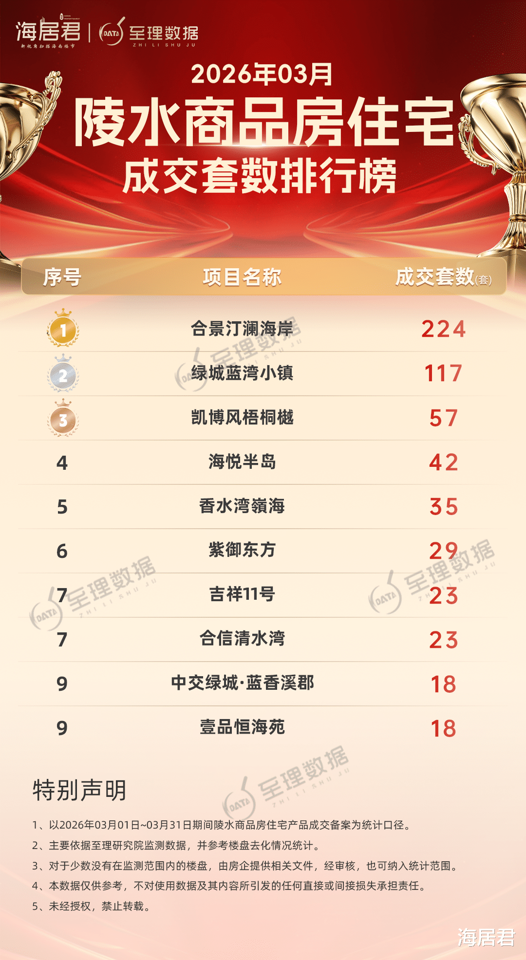 合景汀澜海岸继2月份跻身销量前三强后,3月份再成交备案224套、约23320平方米,摘得陵水商品房住宅成交套数、成交面积双料冠军。