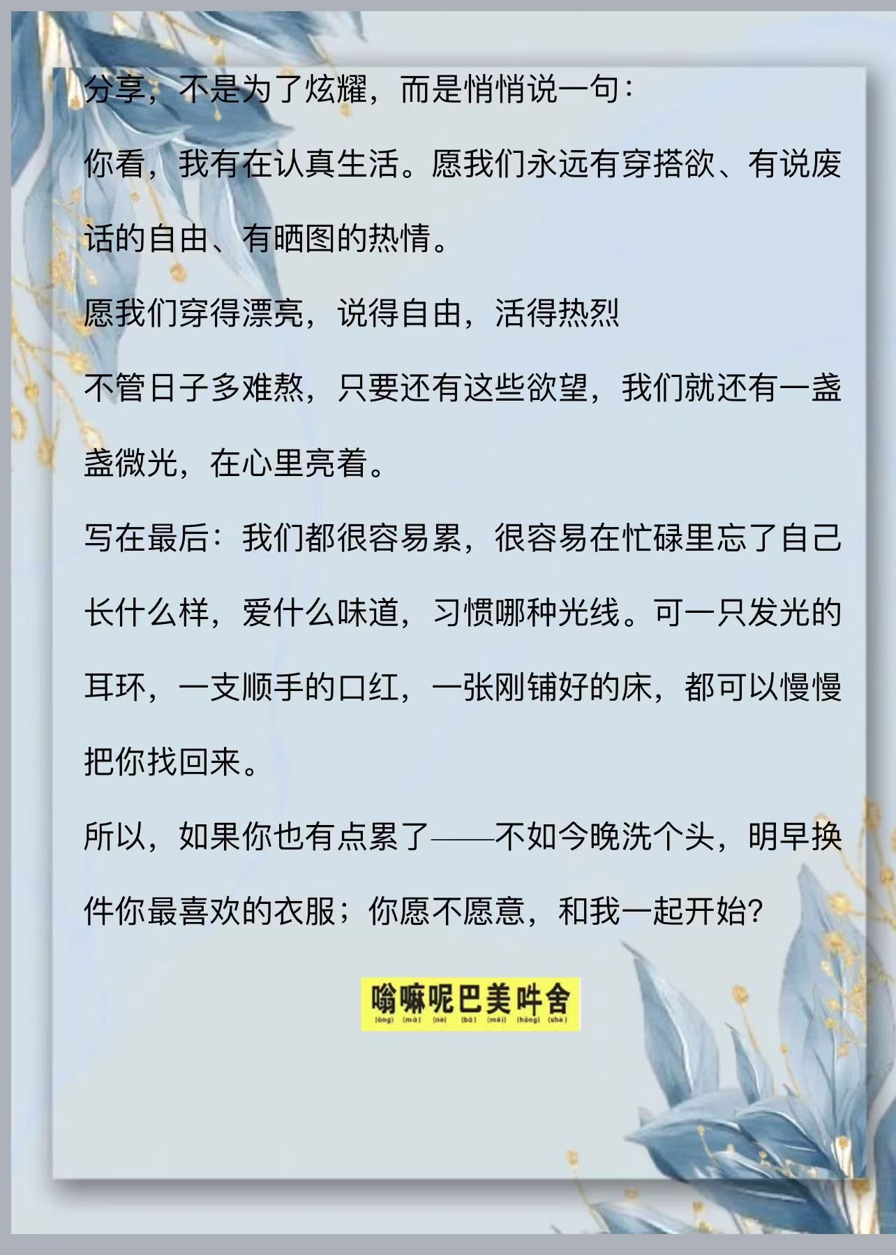 分享,不是为了炫耀,而是悄悄说一句:你看,我有在认真生活。愿我们永远有穿搭欲、有说废话的自由、有晒图的热情。