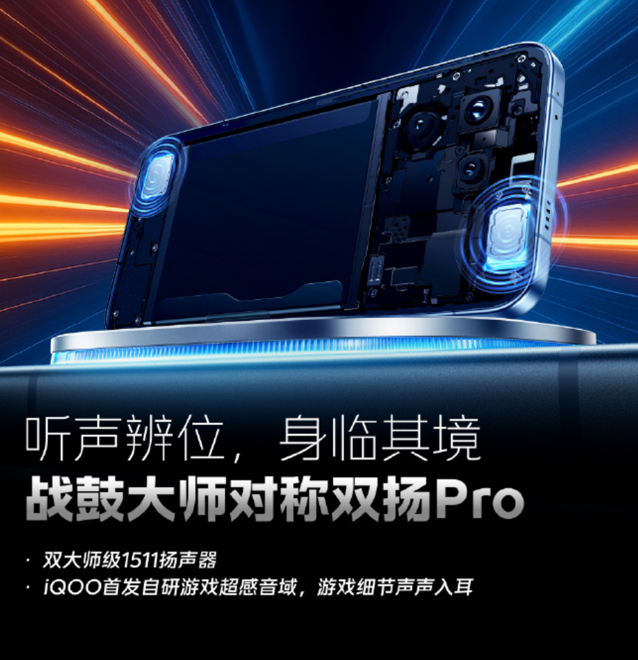 之前玩《王者荣耀》总觉得音效差点意思,iQOO 15直接安排上战鼓大师对称双扬Pro,上下对称的双扬声器让音效又均衡又稳定,还首发了自研游戏超感音域,连敌方英雄的脚步声从哪个方向来都听得清清楚楚,再配上iQOO TWS 5的无线音质,仿佛置身游戏现场。而且它还有行业首发的战锤MAX双轴马达,0916超大体积能支持X轴、Z轴双向振动,放技能时的振感超真实,游戏爽感直接翻倍。