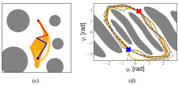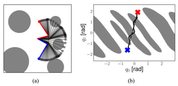 因为机器人规划本来就是多模态的:同一个起点和终点,可能存在左绕、右绕、上绕、下绕等多种可行路径。论文在引言里就拿 2 连杆机器人举了这个例子。