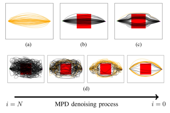 MPD 的推进在于:它用扩散模型去学习多模态轨迹分布,并把这种分布直接用于新规划问题的后验采样。这使它天然更适合处理存在多条可行路径的机器人规划任务。