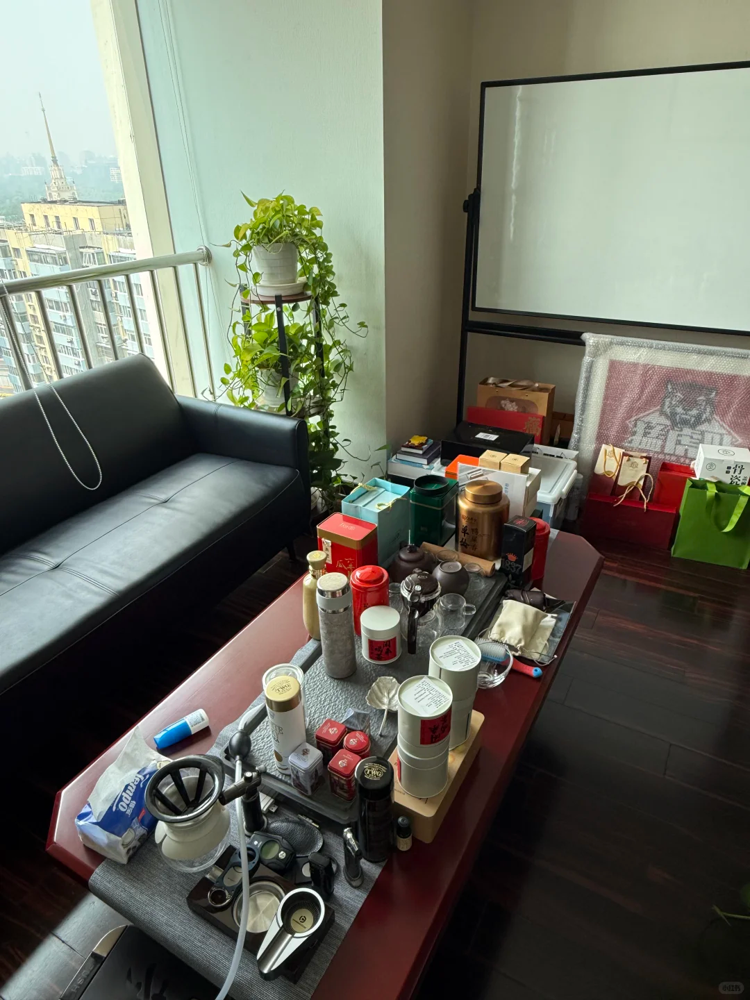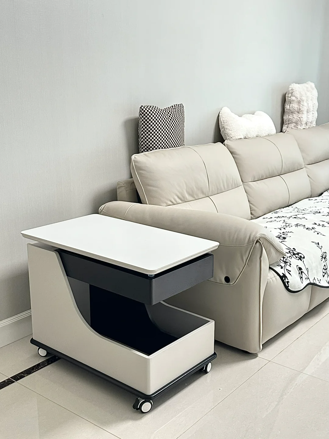 还有比较笨重的大茶几,上面总是杂乱,放在客厅当中也很占地方,扔掉笨重的茶几,换成可以移动的小边几,