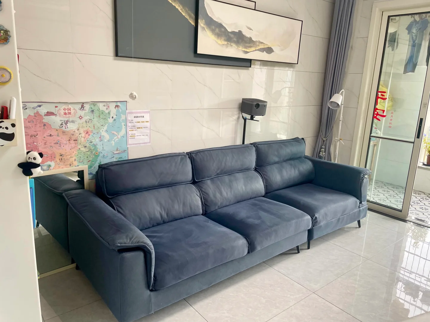 平时放在沙发旁边用的时候移动过来,这样改造一下之后,家里的客厅立马放大一倍。