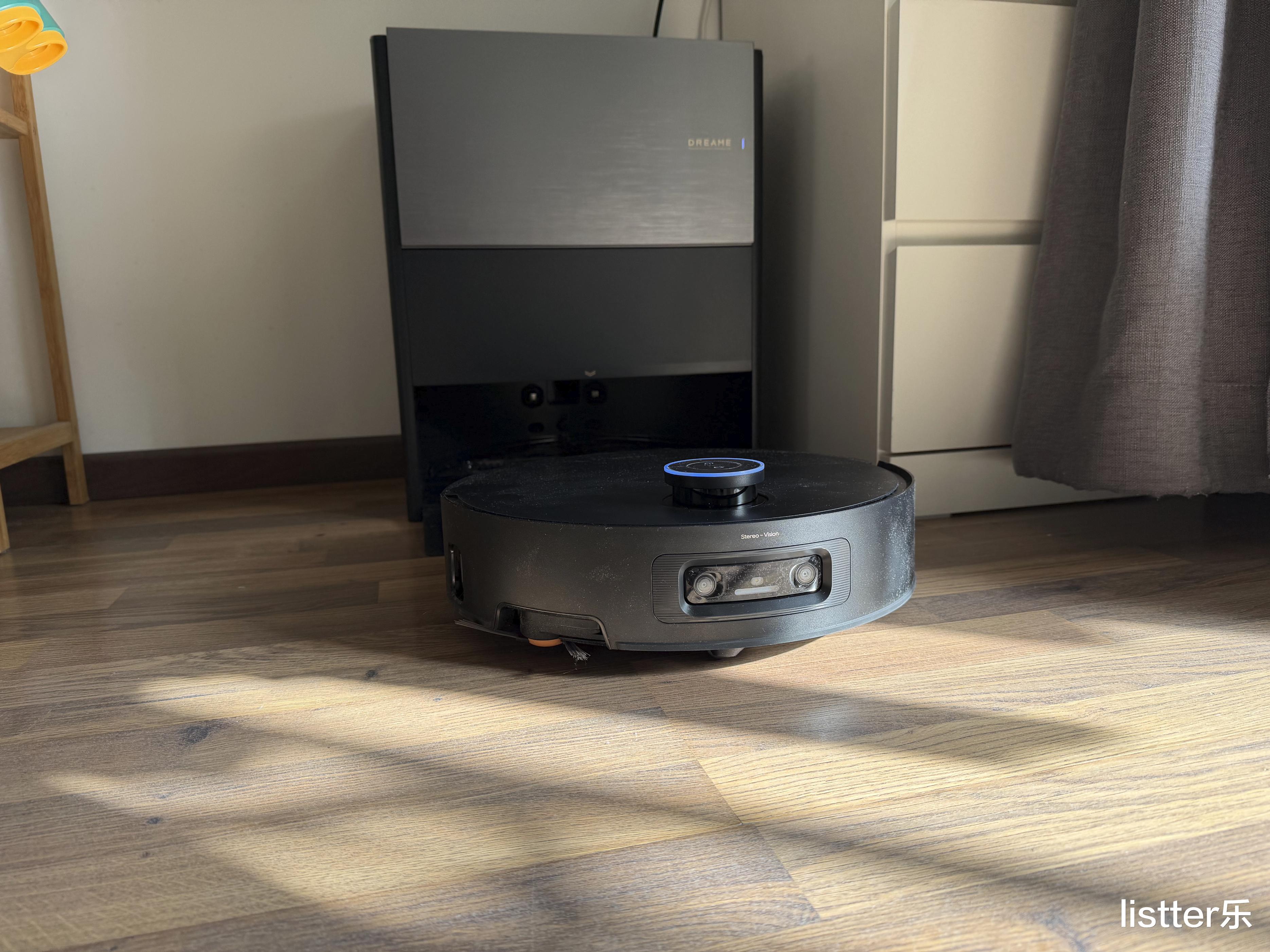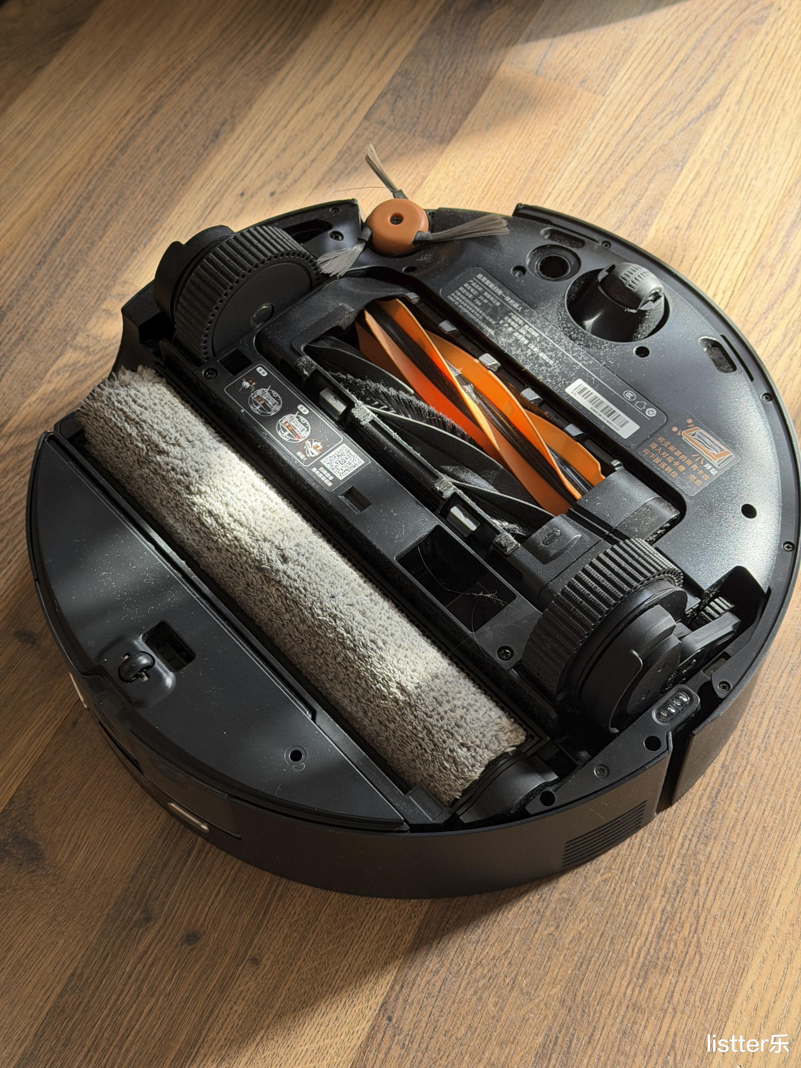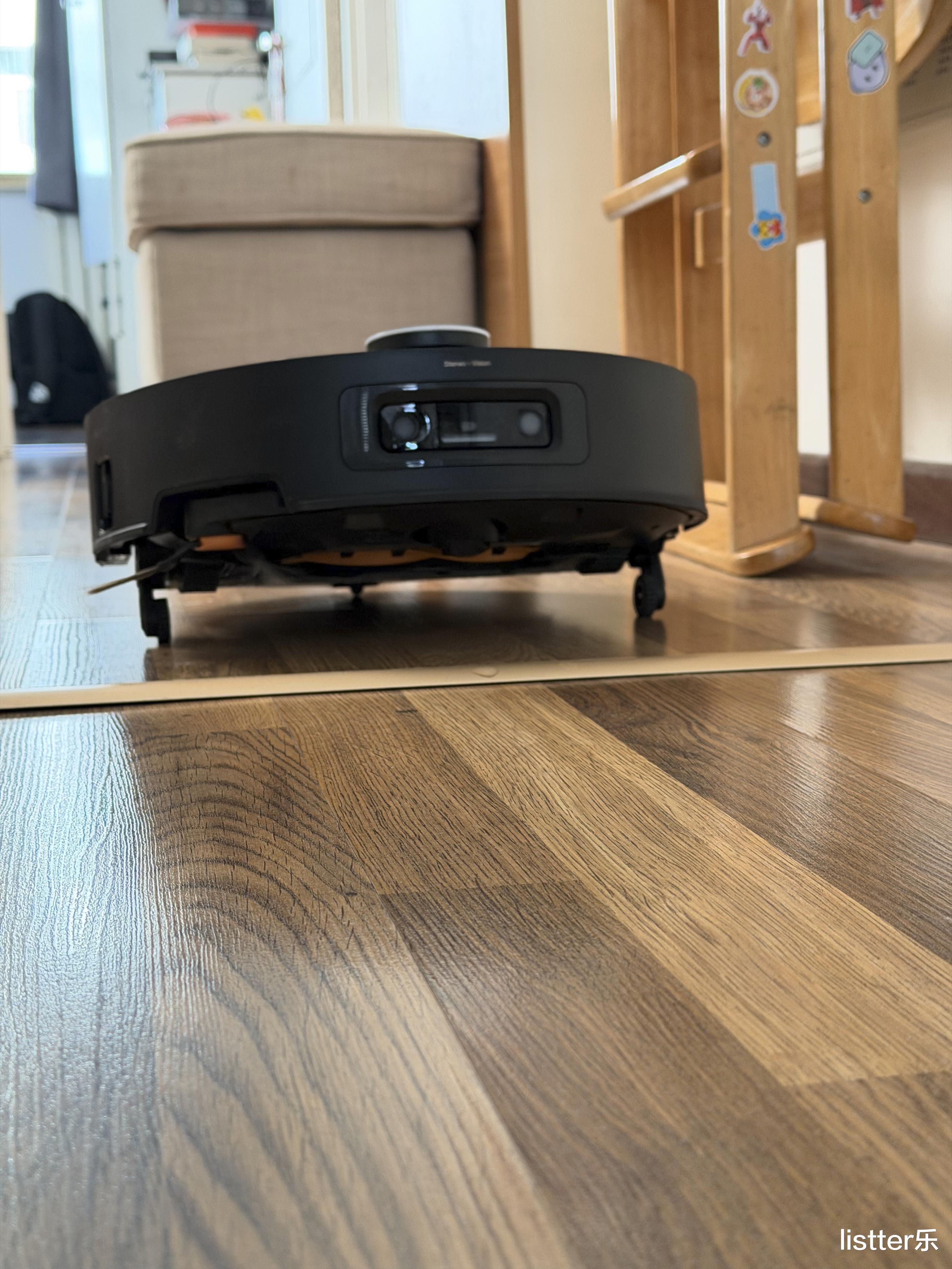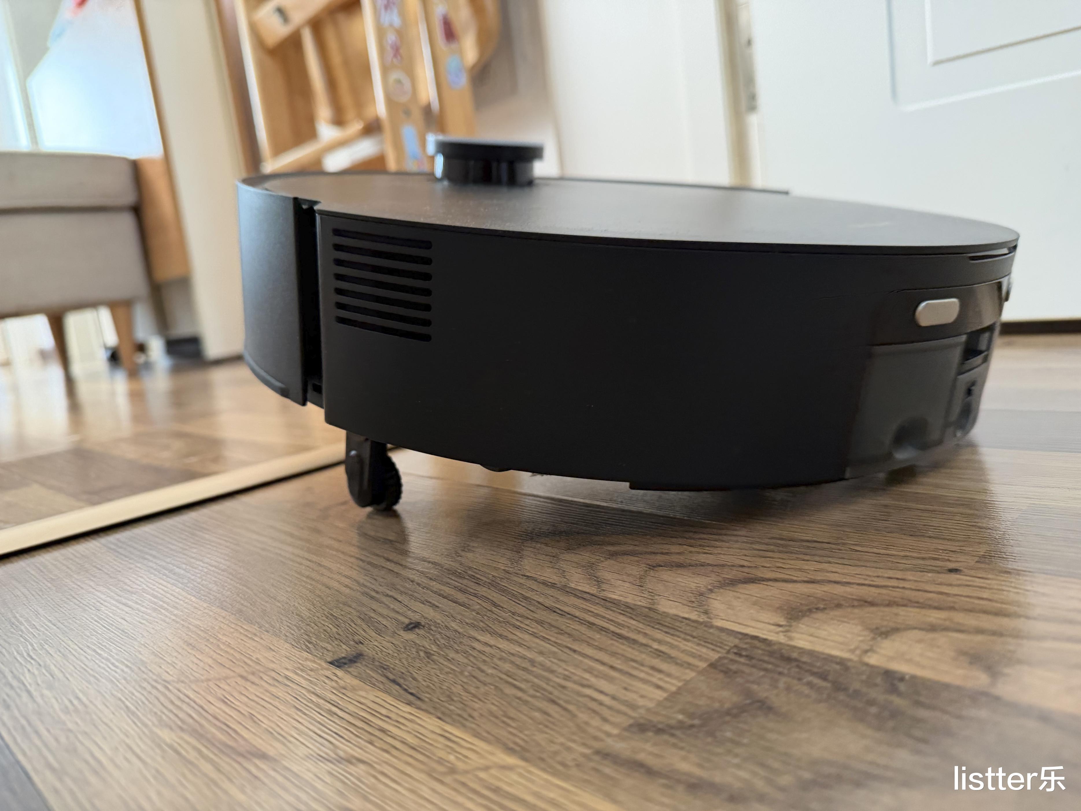 最牛叉的是这货居然能自己爬楼梯!它底下搭载了一个 6cm 的仿生机械足设计,虽说别墅的那种大台阶它无能为力,但是像是阳台小门槛、推拉门轨道,它可以抬高机身跨越过去,不用手动搬运机器,这真的是太牛了!此外它还有36000Pa 巅峰吸力配合双气旋防缠绕技术,能轻松吸走毛发碎屑,减少毛发缠附在滚刷上的可能,长发和养宠家庭也能放心使用。