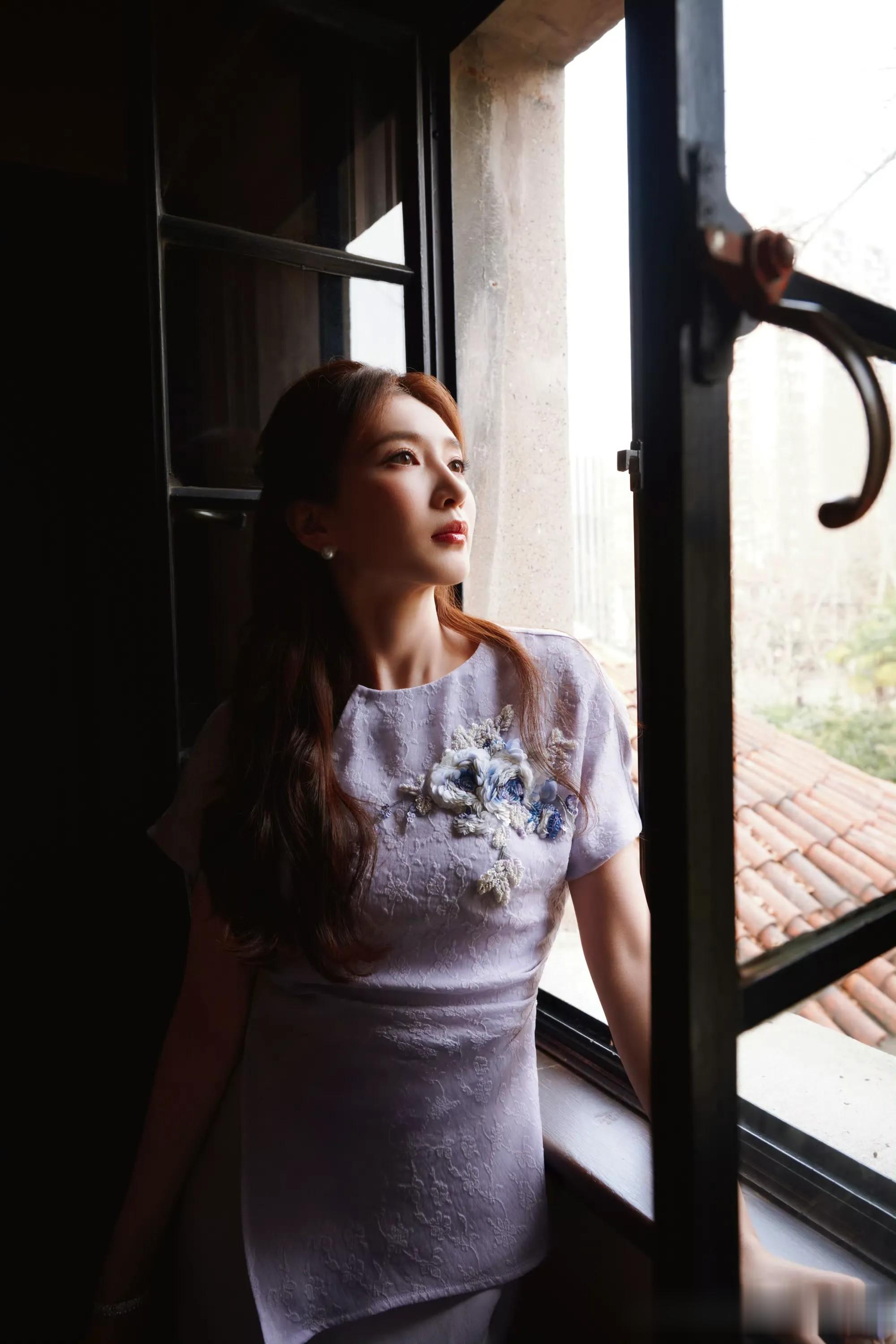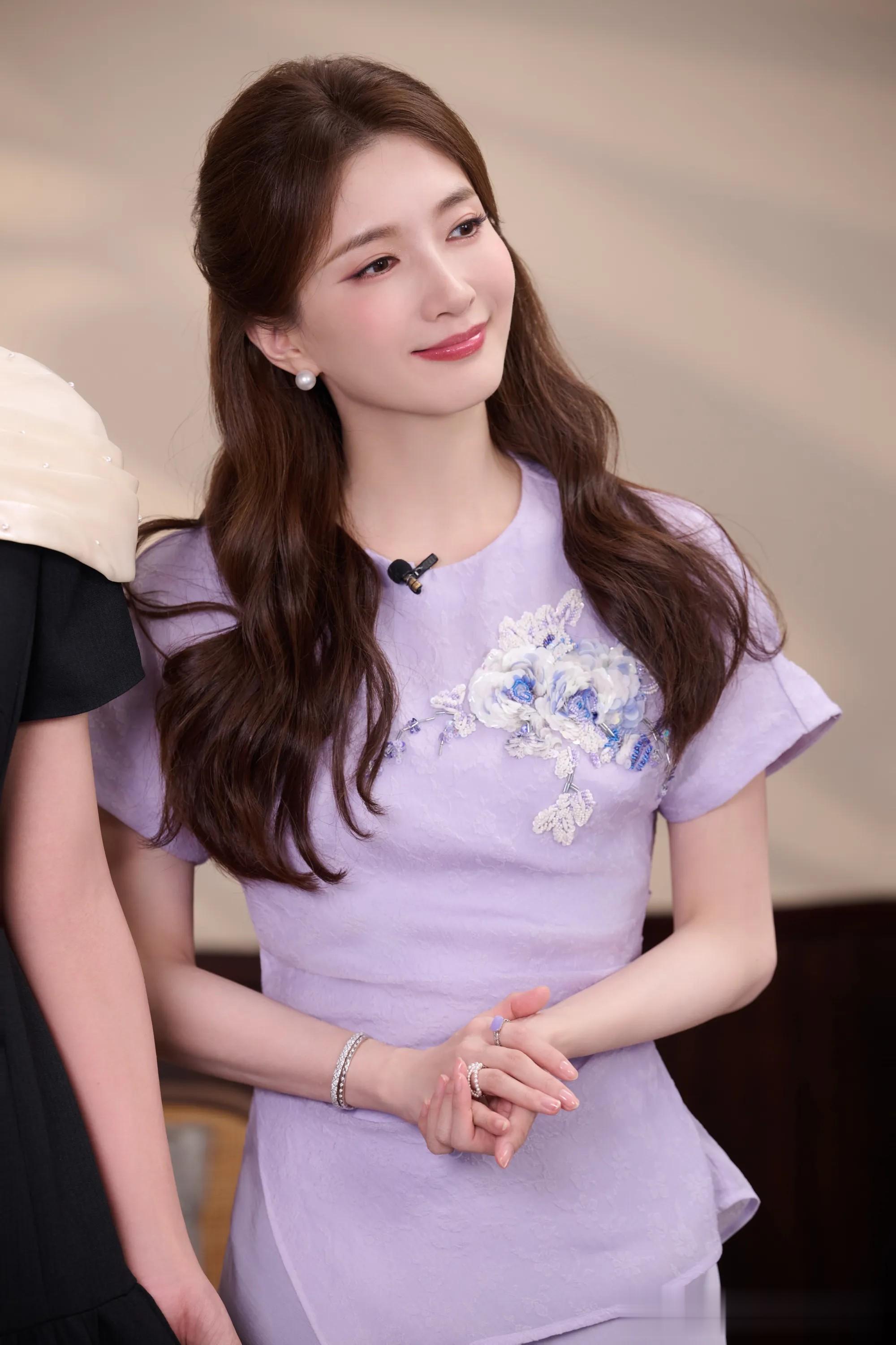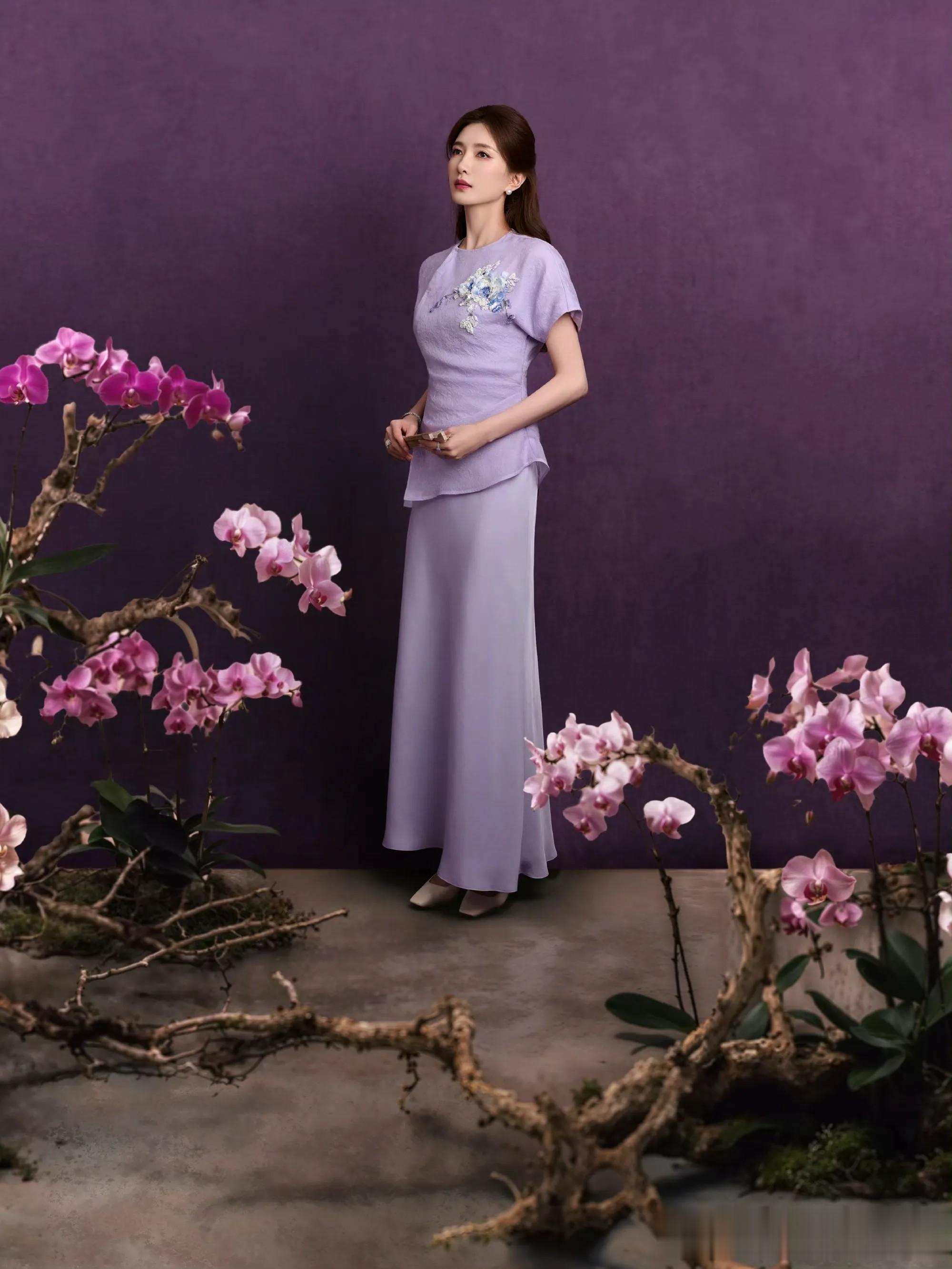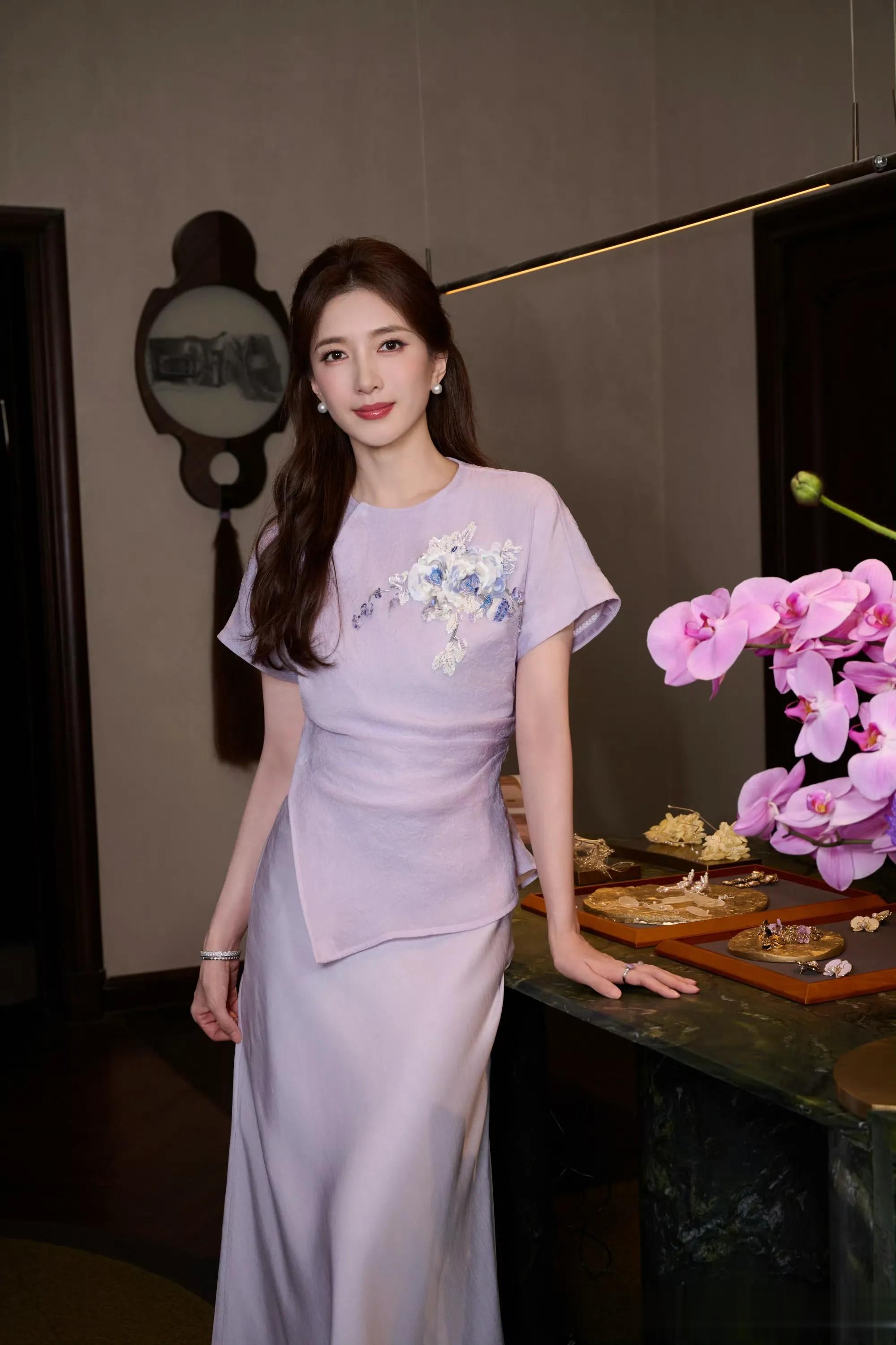江疏影一袭淡紫新中式,解锁东方雅致的高级