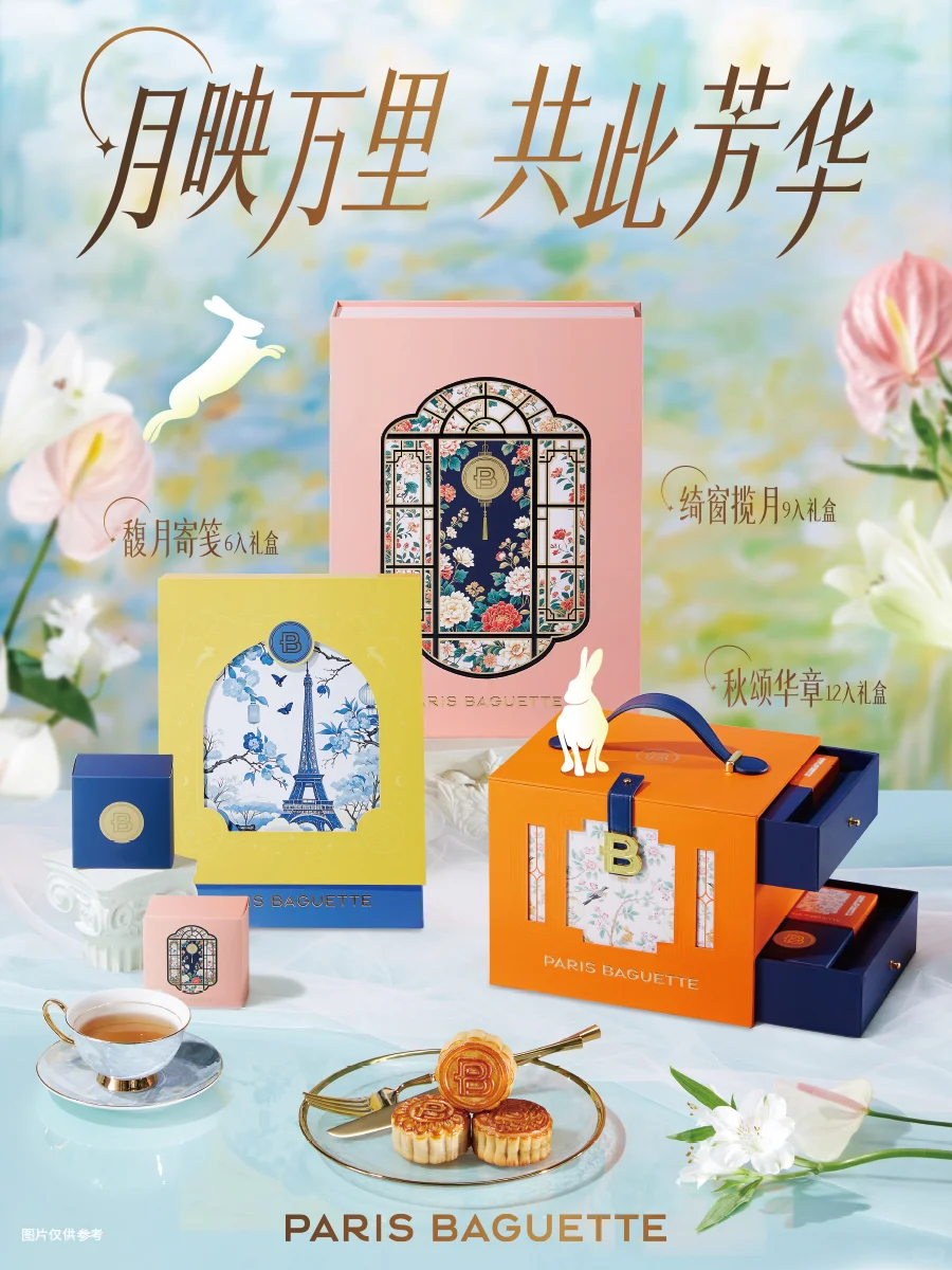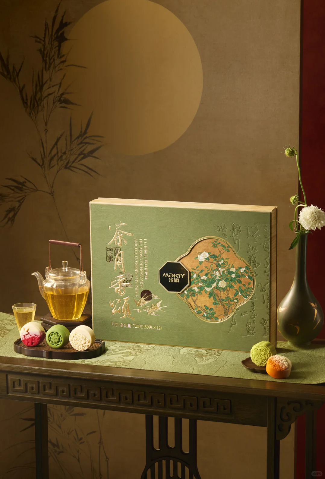 「馥月寄笺礼盒」内含蛋黄莲蓉、奶香椰蓉、川香牛肉各2粒。「绮窗揽月礼盒」内含蛋黄莲蓉、奶香椰蓉、川香牛肉、豆沙黑芝麻核桃、软心橙 C 风味 、软心玫瑰、流心桂花 、流心大红袍观音茶 、流心奶黄9粒风味月饼。「秋颂华章礼盒」内含蛋黄莲蓉、川香牛肉、咸香柠檬味牛乳奶酪、流心芝士 、软心玫瑰、流心桂花、奶香椰蓉、流心青提、流心奶黄、流心大红袍观音茶、豆沙黑芝麻核桃、软心橙C风味,12枚风味月饼。