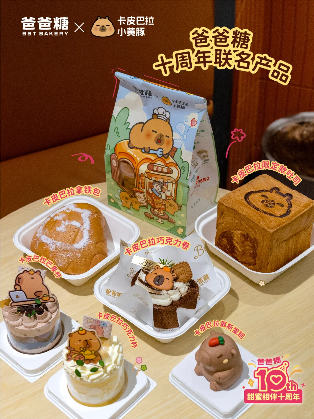 卡皮巴拉拿铁包、卡皮巴拉限定款吐司、卡皮巴拉巧克力卷、卡皮巴拉芒果杯、卡皮巴拉巧克力杯、卡皮巴拉慕斯蛋糕,10周年可爱来袭!