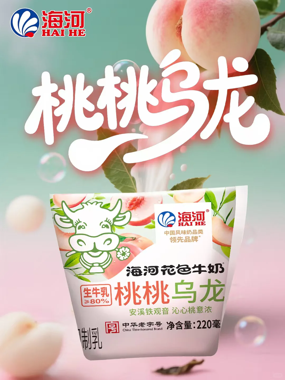 新品采用安溪铁观音茶和100%国有牧场奶源,添加白桃风味,呈现出乌龙茶香和白桃香气。