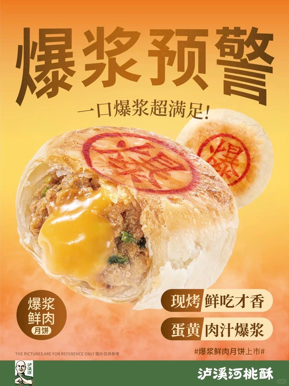 经典鲜肉月饼的基础上,加入咸蛋黄流心,金沙蛋黄与鲜香肉汁爆浆流出,味蕾超满足。