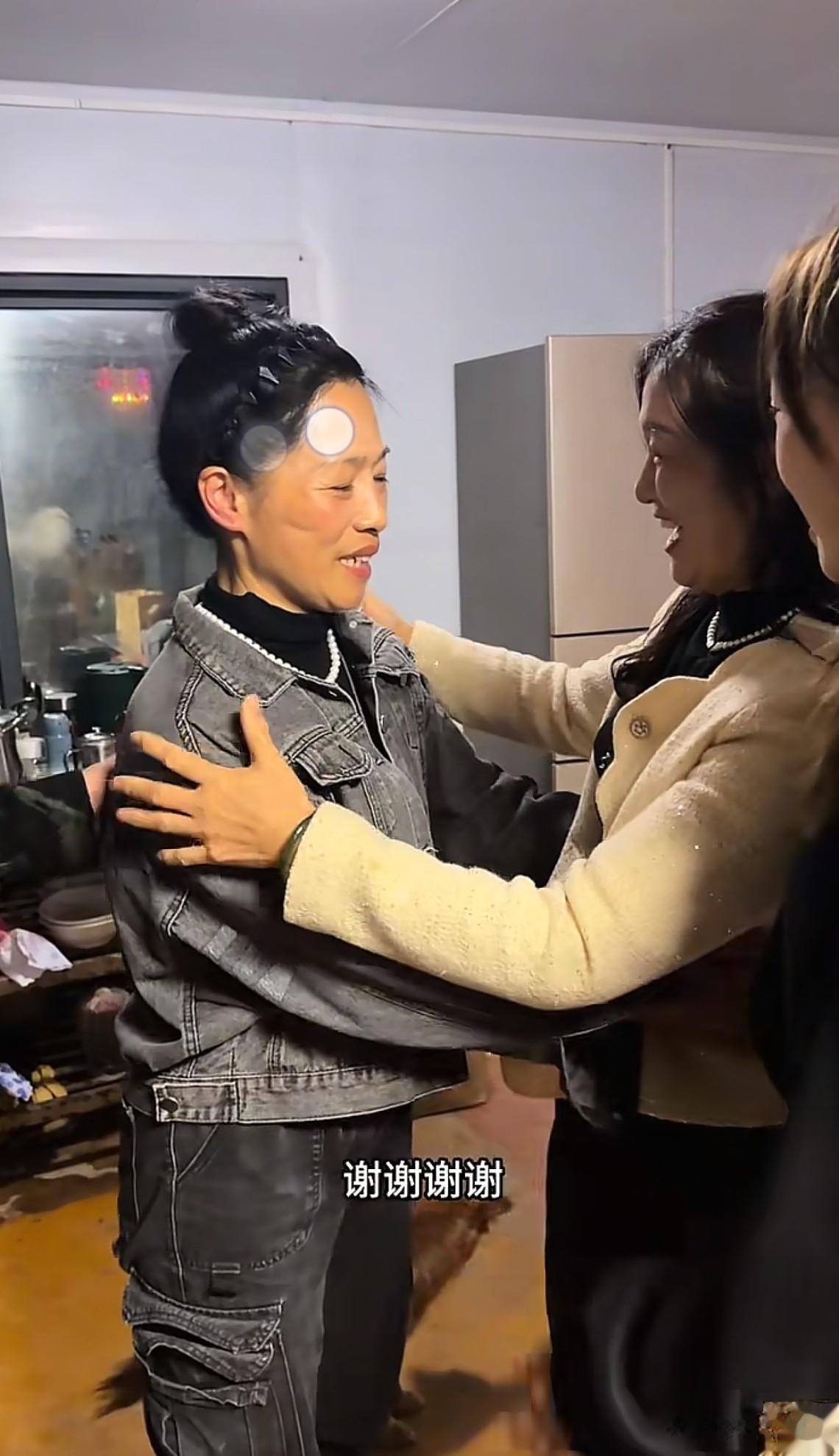 两个妈妈都很朴实善良,甫一见面她们就热情的拥抱在了一起。