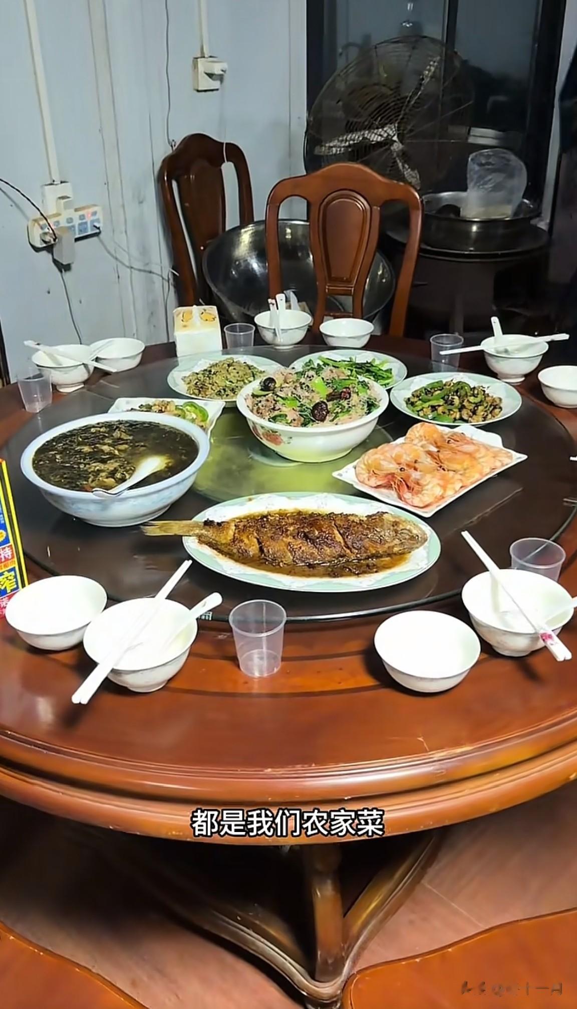 这一桌饭菜的食材全都是海军妈妈农场里自产自销的。