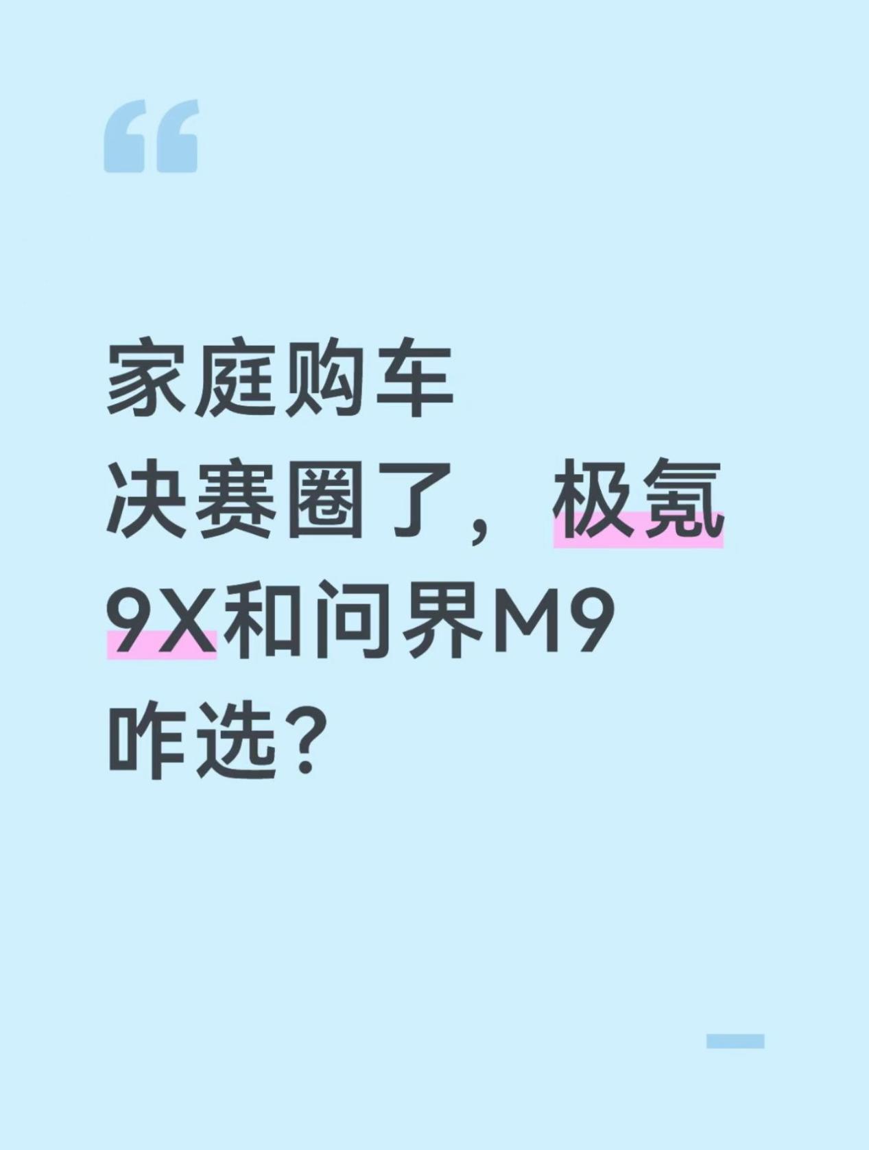 最近一段时间老爸突然说想把家里的车换了,毕竟开了这么多年,现在国产新能源各方面也起来了,于是我就带他去看了一圈,最后锁定的是极氪9X和问界M9