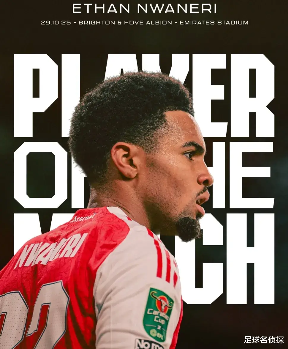 恩瓦内里被阿森纳官方评选为了本场比赛最佳球员!