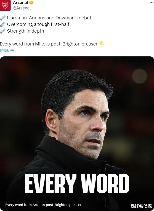 阿尔特塔出席了赛后新闻发布会,我们来看看阿森纳主帅谈到的主要内容。