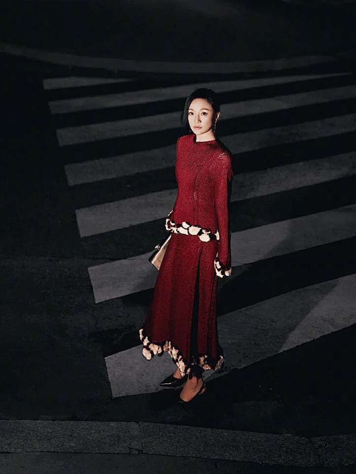 例如周迅这身来自Chanel 2026的针织裙套装,半裙上少量的花卉元素,几乎可以carry任何场合。