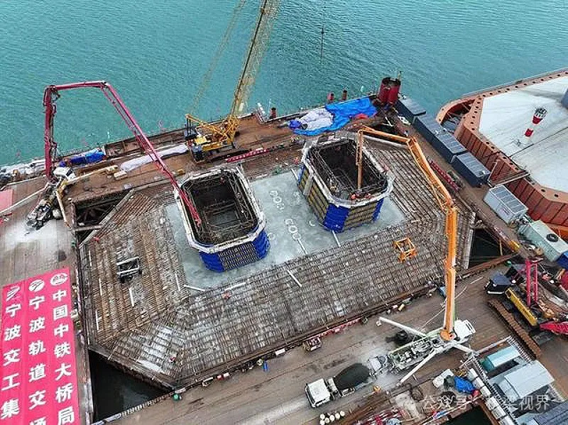 国内首座市域铁路跨海大桥象山港跨海大桥首个主墩承台“破水而出”