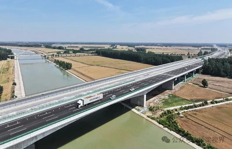 梁济运河大桥横跨国家南水北调干线,全长837米,宽20.5米,主桥采用(65+100+65)米预应力混凝土连续梁,是山东济广高速公路济南至菏泽段改扩建工程的控制性工程。