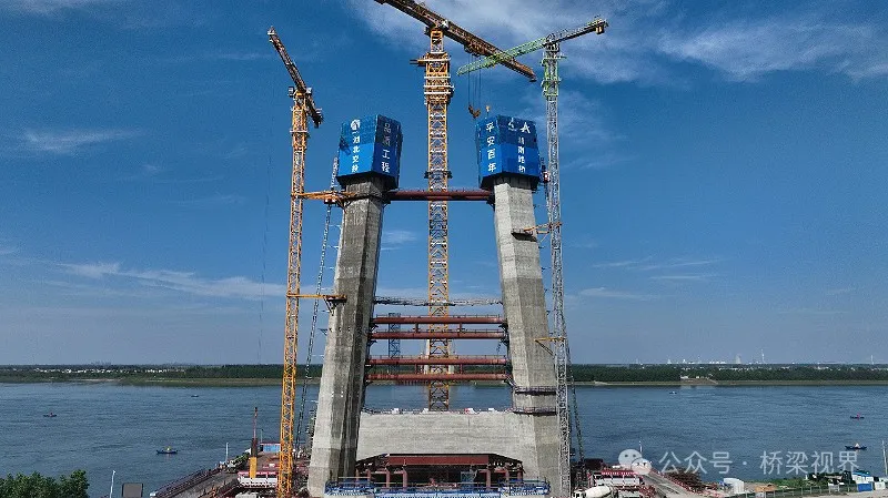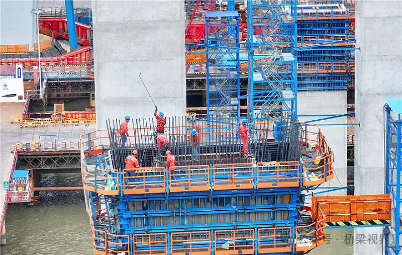 观音寺长江大桥具有地质条件差、桩基施工难度大;基坑开挖紧邻长江干堤,安全风险高;钢筋混凝段自身重,技术要求严等施工难题。为此,项目部严格落实施工方案,加强现场管理,组织开展风险分析研判和重要方案论证,细化液压爬模等大型设备检查验收程序,采用钢筋部品整体吊装技术,全面提升质量、安全管控水平。同时组织多轮劳动竞赛,进一步细化施工工艺、优化施工方案、强化资源配置,保工期、保进度、保质量、保安全,确保大桥阶段性建设目标得以实现。