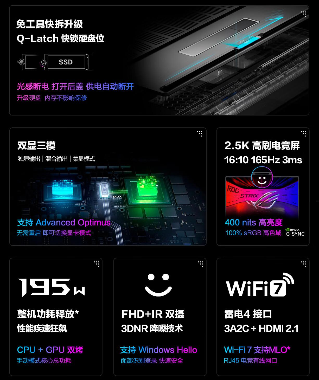 ROG魔霸新锐2025还继承了旗舰型号的“无工具快拆”设计,只需拨动卡扣即可轻松打开底盖,内部的光感传感器会自动切断电源,安全性拉满,预留的M.2插槽和快拆扣具,可以轻松加装固态硬盘或升级内存,即便是电脑小白也能轻松搞定,为后续升级提供了极大便利。