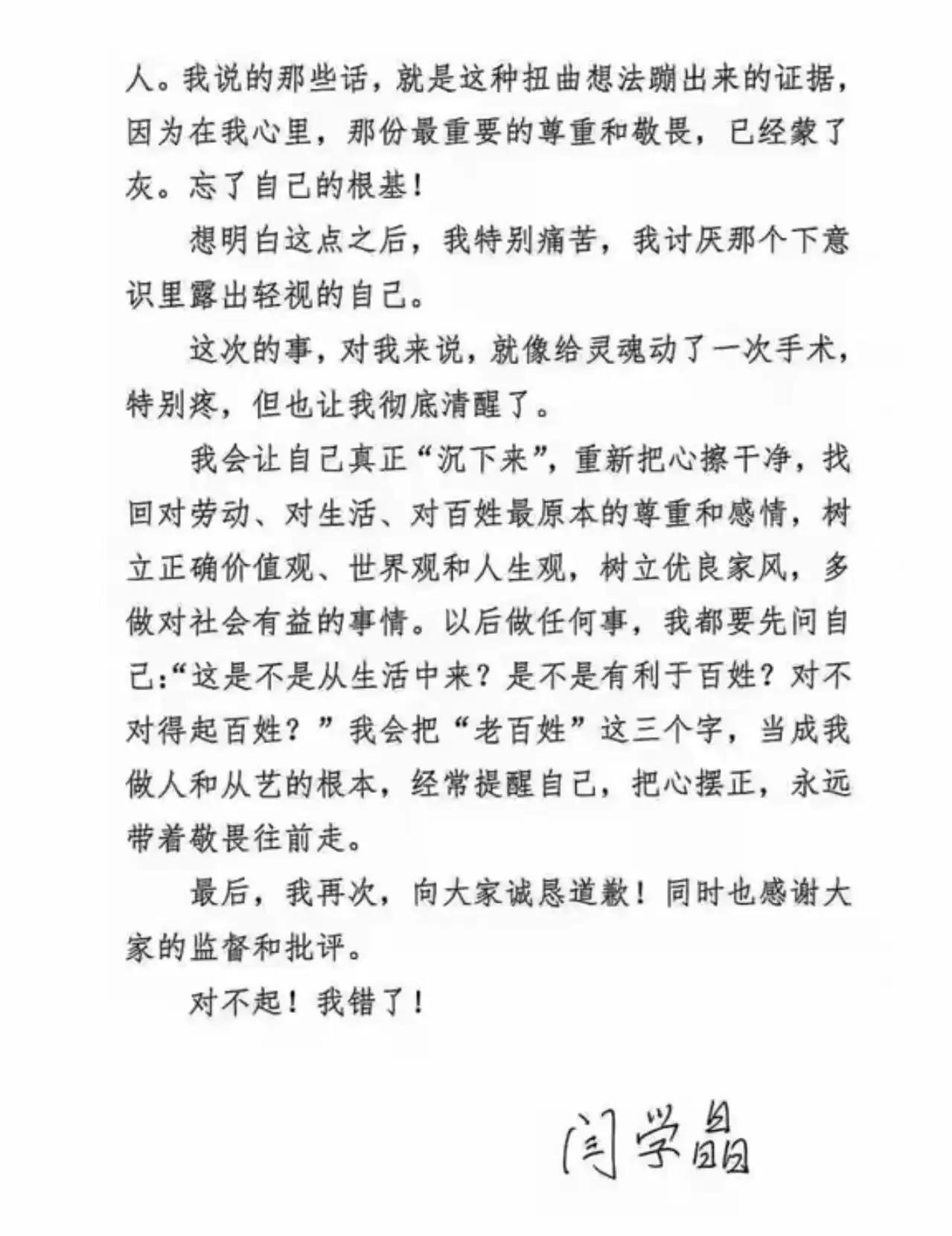 3. 公开致歉:闫学晶朋友圈发文,反思自身优越感与对大众的轻视,承诺回归初心 。