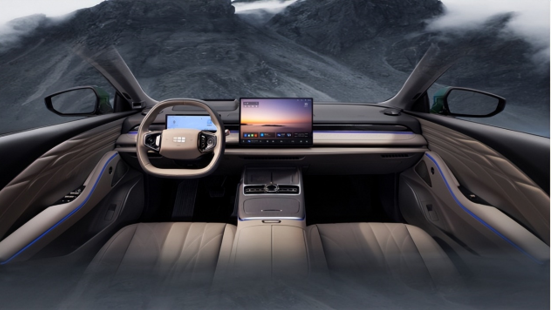 车机内部配有龙鹰一号芯片和Flyme Auto智能座舱系统,语音系统接入了满血版Deepseek大模型,能实现全时免唤醒和多指令并行处理,用户可直接控制导航、空调和娱乐系统。