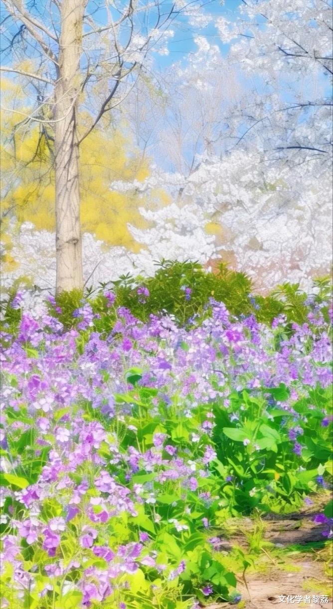只要开过,只要活过,只要顺应了自己的内心与节律,这便是一生最好的交代。走出林子的时候,我回头看了一眼。那片蓝紫还在那里,铺天盖地的,从林下漫到河岸,风还是那样吹着,花瓣还是那样摇动着,像撒了一地细碎的星光。我的鞋边,也沾上了几粒这样紫色的星芒。我朝前走去,心里一片宁静,仿佛也化作了一株二月兰,在紫色的烟霞里,静静地,圆满地,摇曳着。